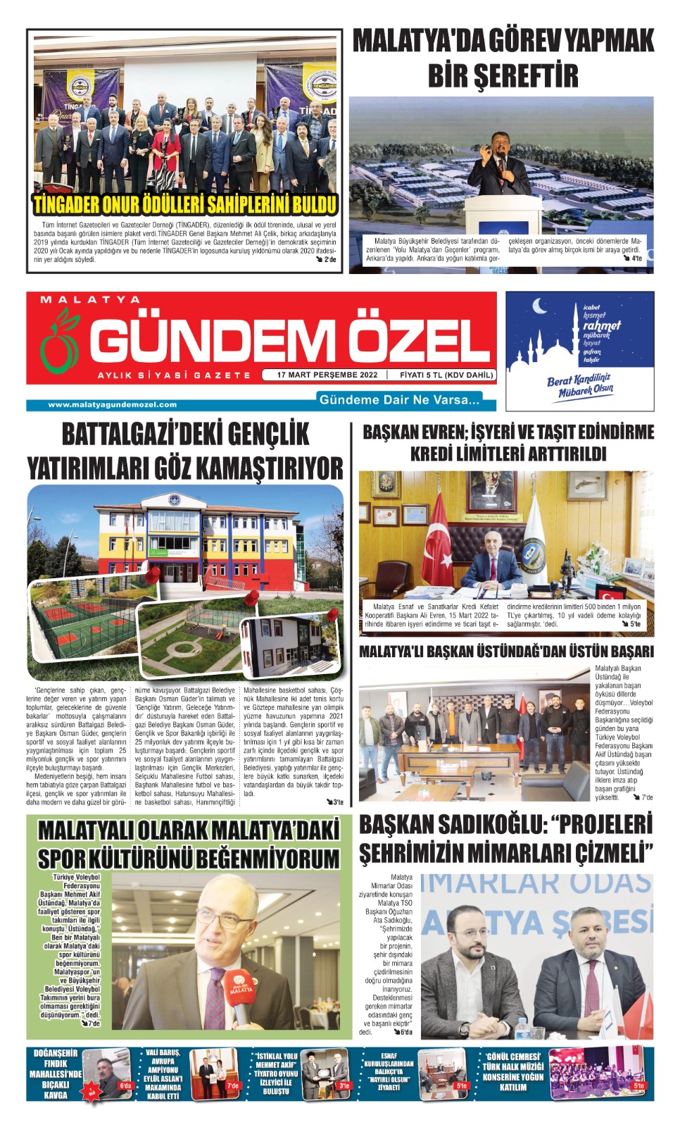 Geçtiğimiz günlerde görkemli bir gece ile Onur Ödülleri sahiplerini buldu.''Malatya Gündem Özel'' gazetesi TİNGADER'in gerçekleştirdiği ilk ödül töreninin haberine yer verdi.